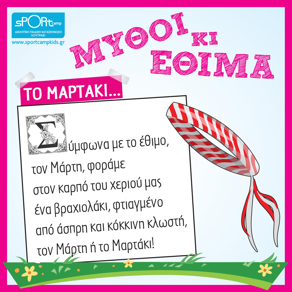 Σύμφωνα με το έθιμο, την 1η Μαρτίου, οι μητέρες φορούν στον καρπό του χεριού των παιδιών τους ένα βραχιολάκι, φτιαγμένο από στριμμένη άσπρη και κόκκινη κλωστή, τον Μάρτη ή Μαρτιά!